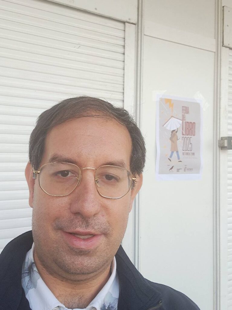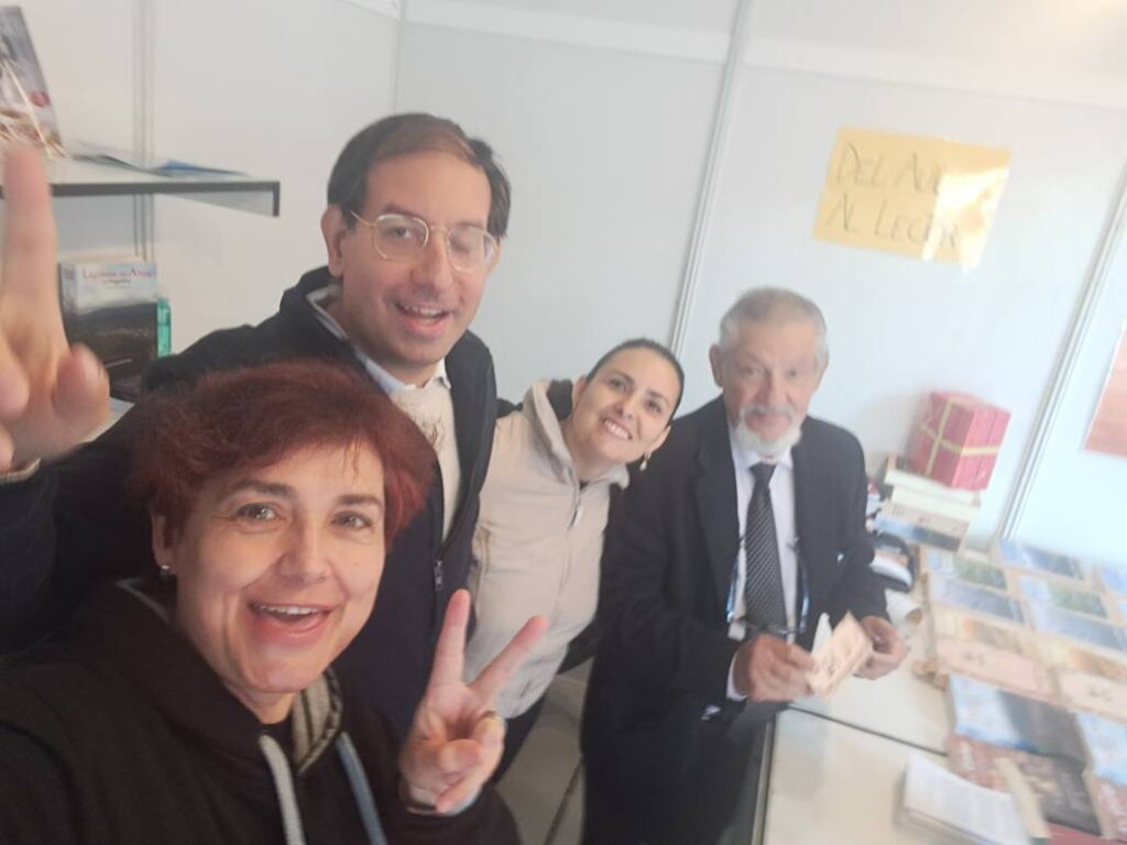 Al lado de nuestra caseta se encontraban nuestros compañeros Gregorio, Miguela y Noemi de la asociación literatura en el viento ” Plumas y Letras “.