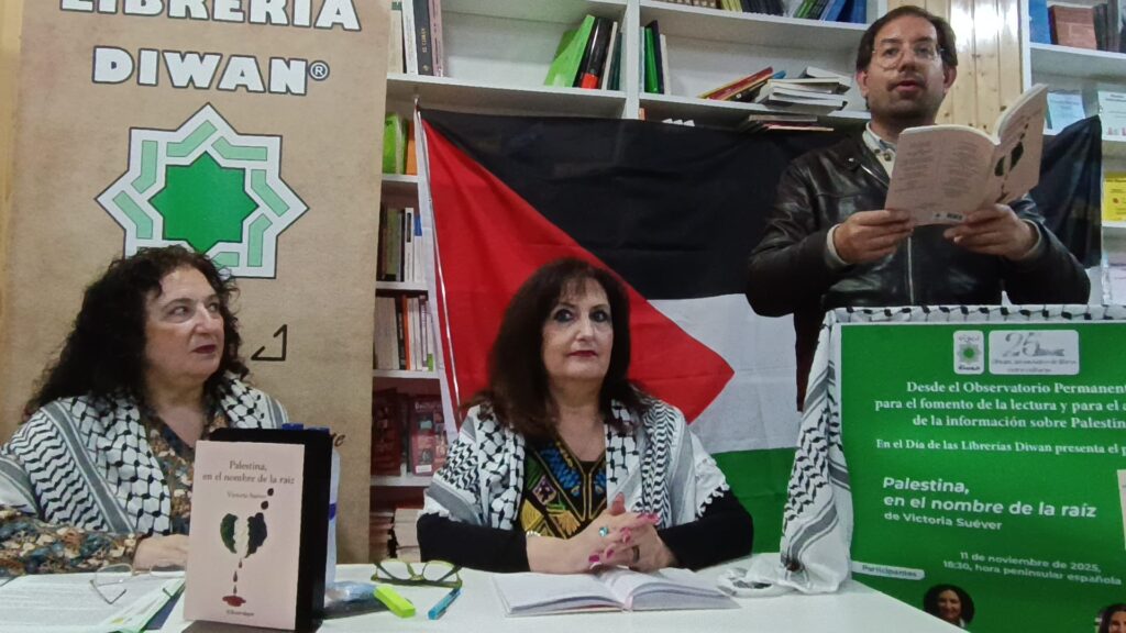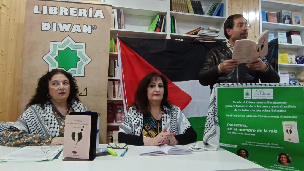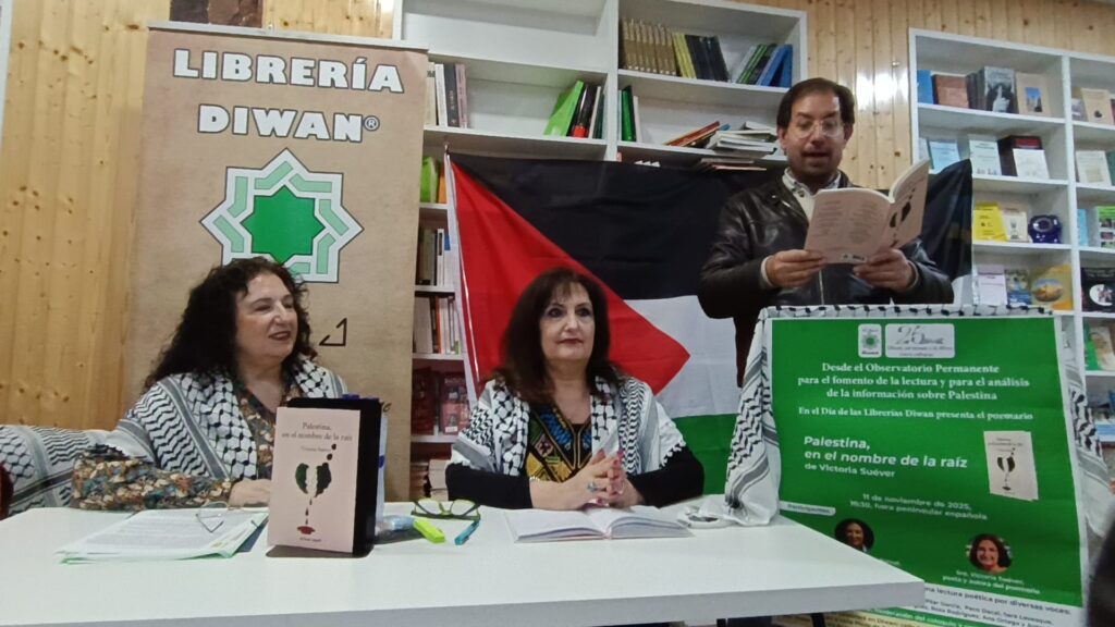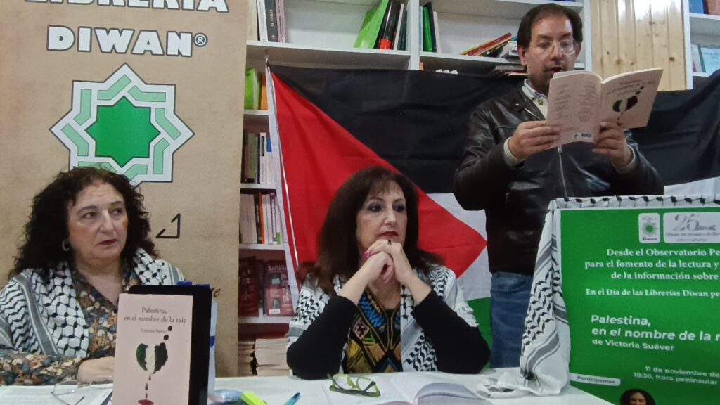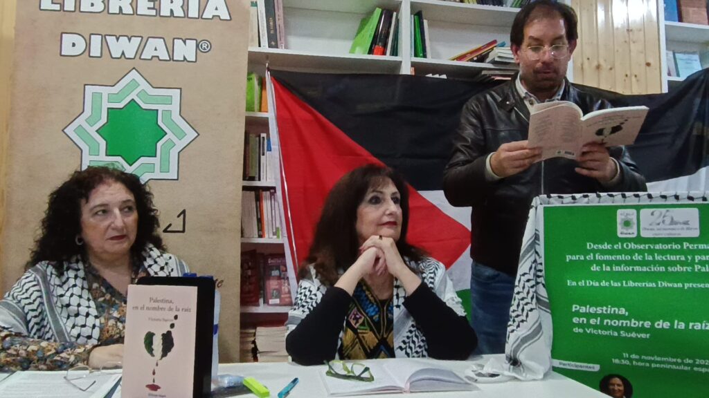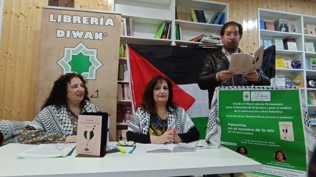 En la librería Diwan tuvo lugar la presentación del libro de Victoria Suéver ” Palestina , en nombre de la raíz “, gracias Victoria por la invitación de poder leer tus poemas.