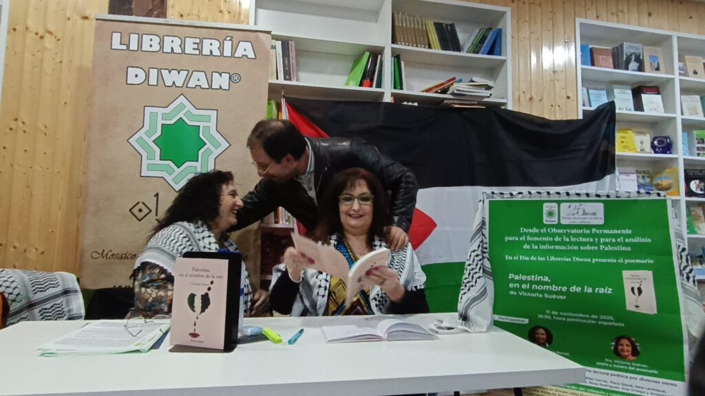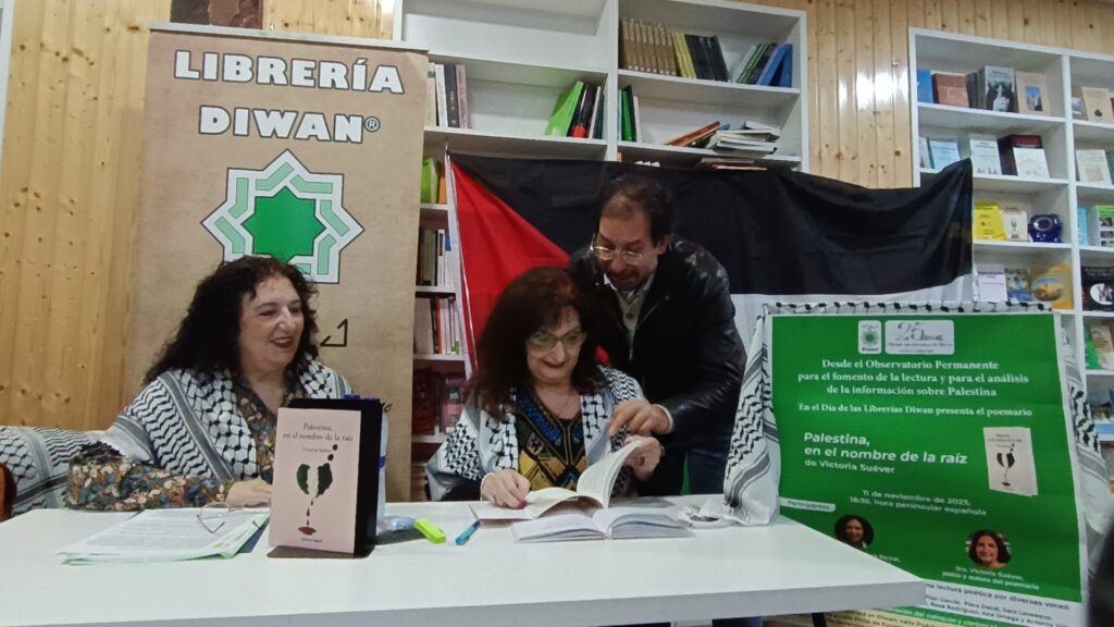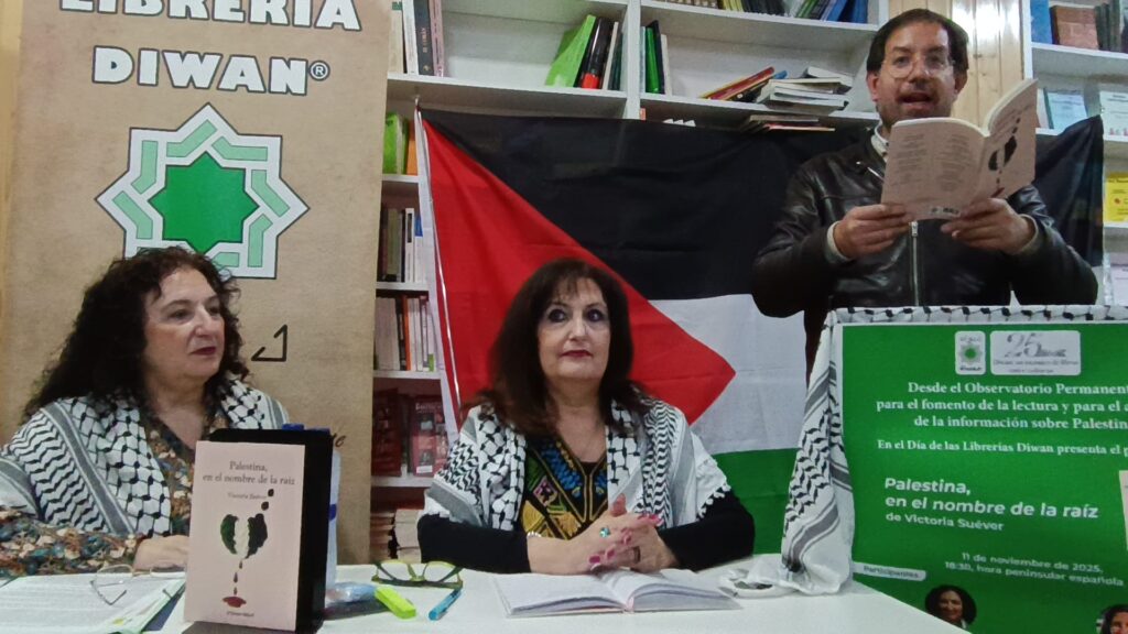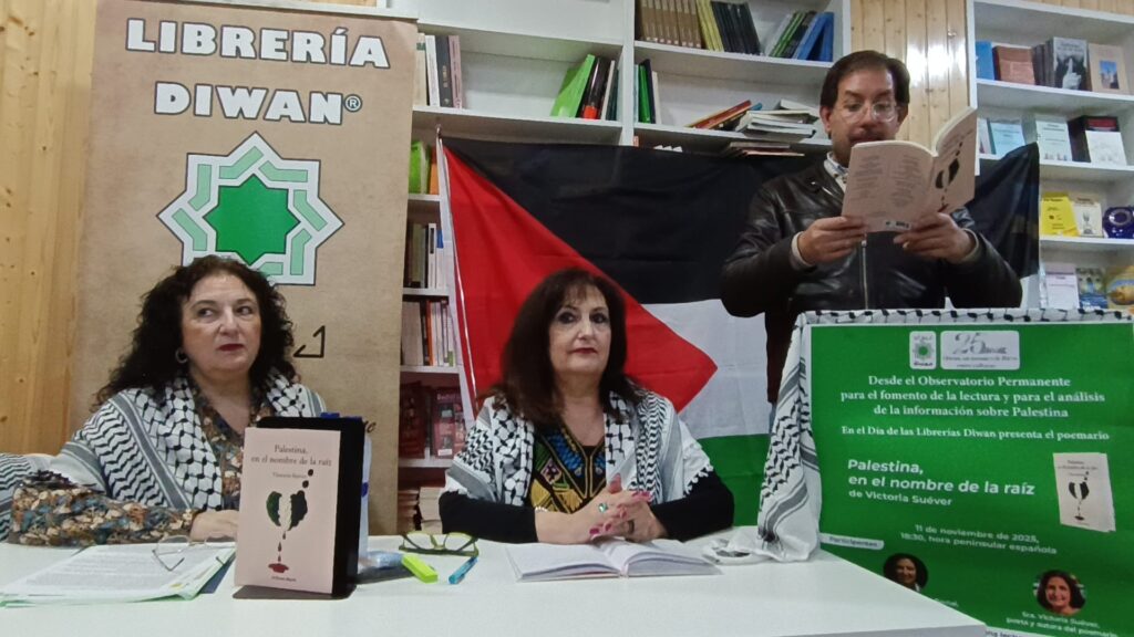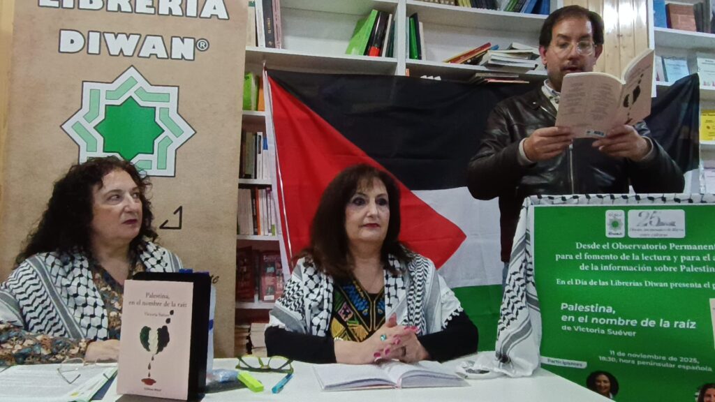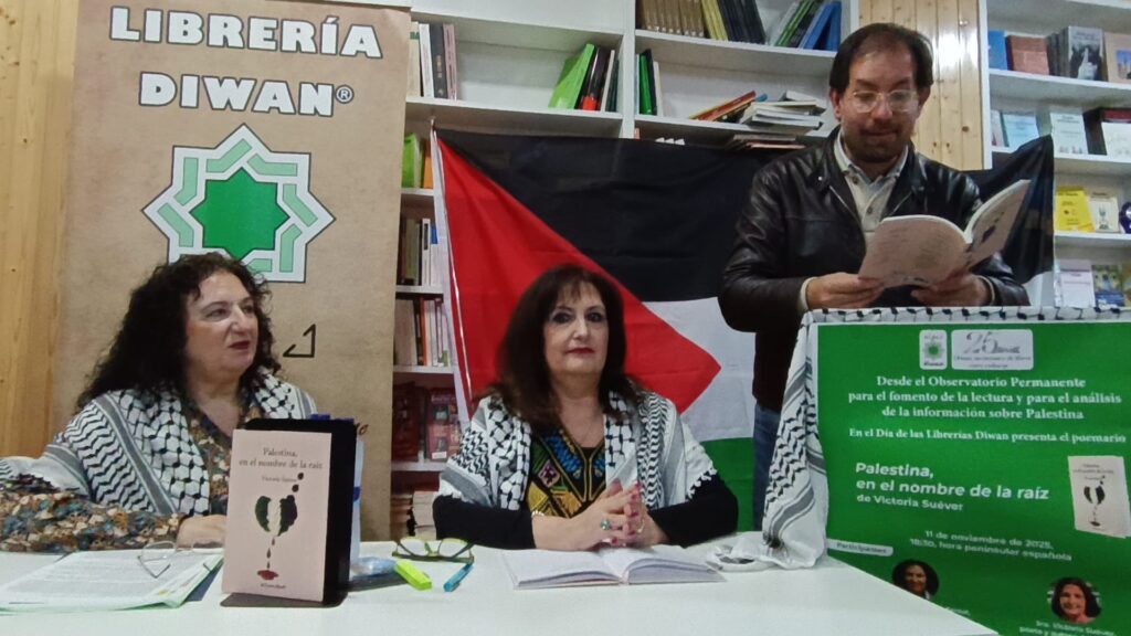 En la librería Diwan tuvo lugar la presentación del libro de Victoria Suéver ” Palestina , en nombre de la raíz “, gracias Victoria por la invitación de poder leer tus poemas.