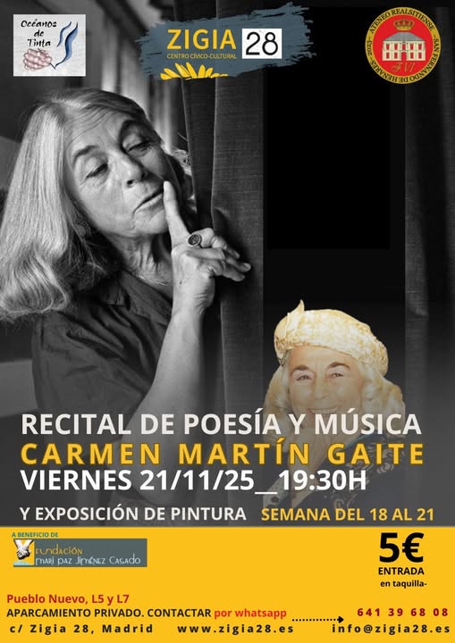 El pasado Viernes fue una tarde muy especial, en el Espacio de zigia tuvo lugar el recital de poesía y música dedicado a Carmen Martín Gaite por su centenario de su nacimiento el próximo 8 de Diciembre.